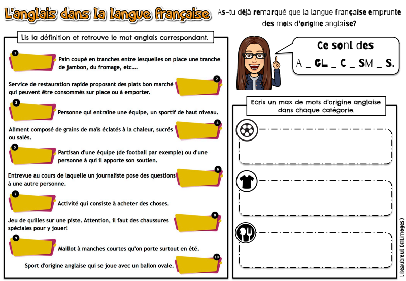 LES ANGLICISMES - PREMIERS COURS DE 6e