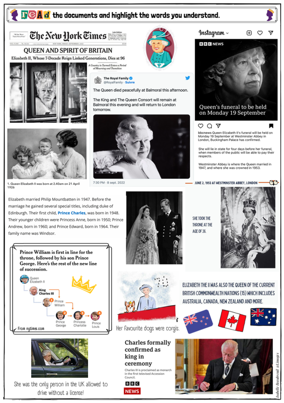 Tribute to Queen Elizabeth II - Reading strategies 6e-5e